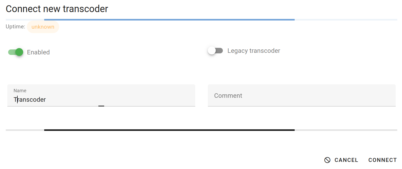 В появившемся окне, введите название для вашего Transcoder и нажмите кнопку Connect: