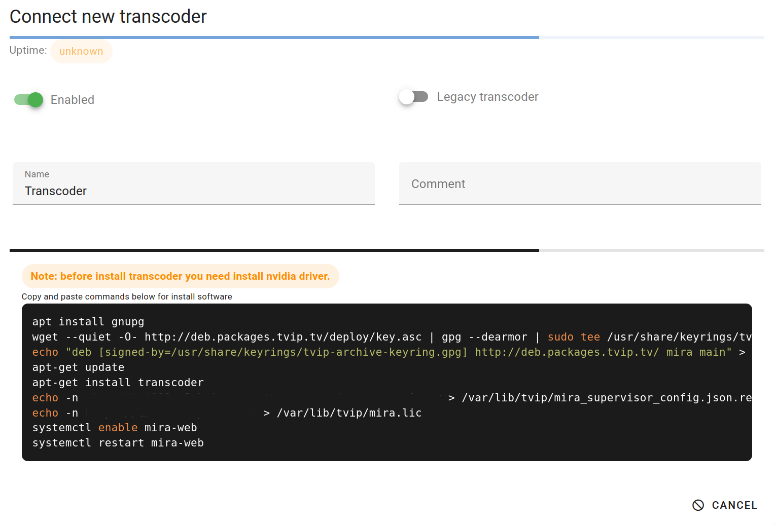 Обратите внимание, что перед установкой транскодера необходимо установить Nvidia Driver.