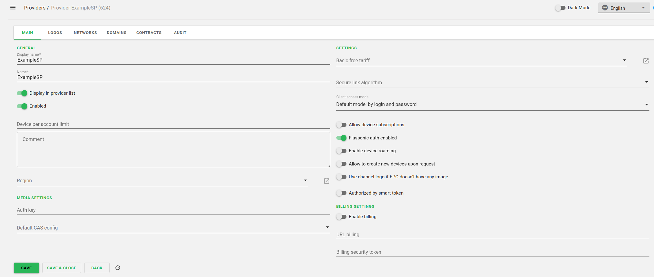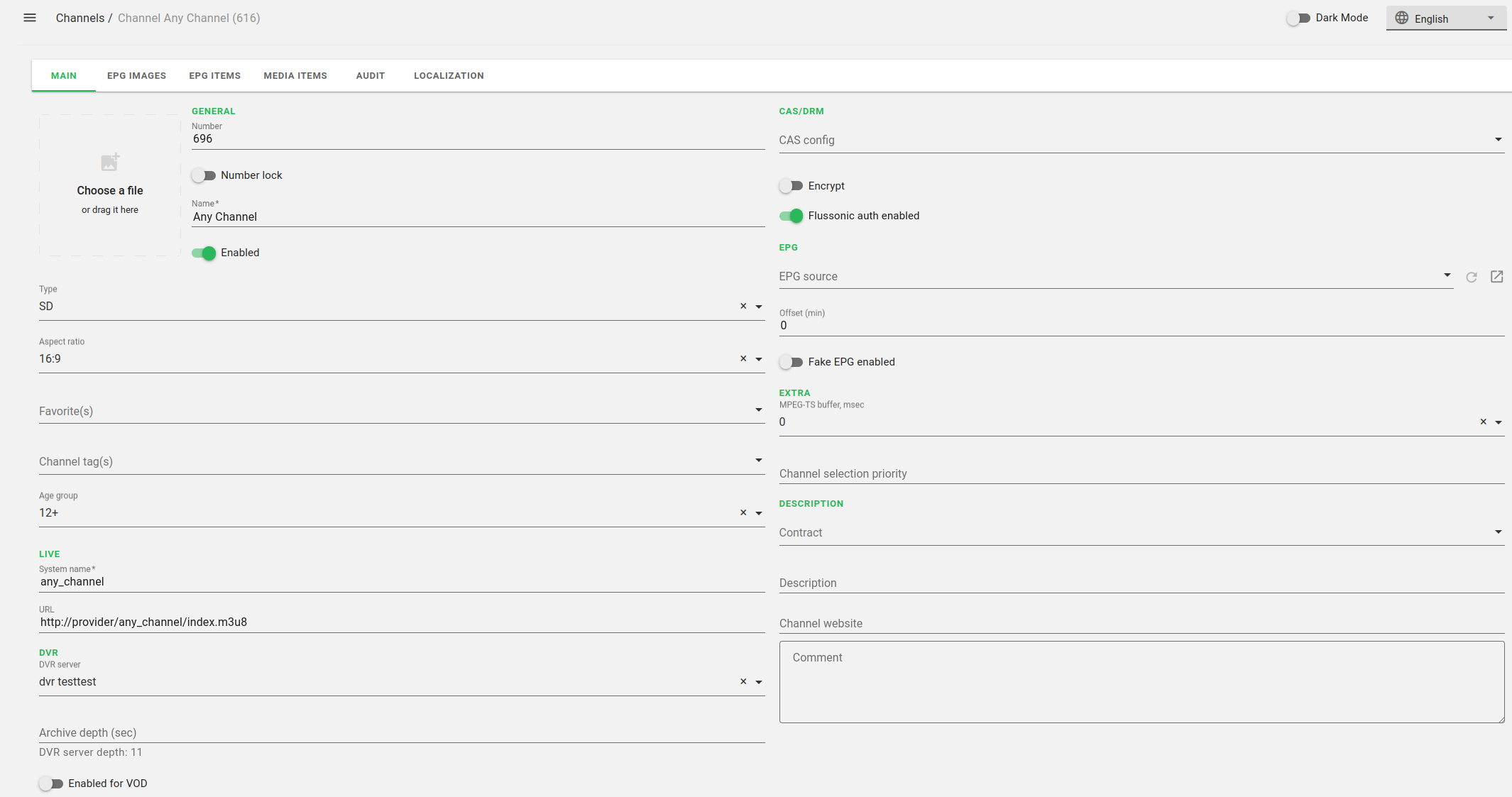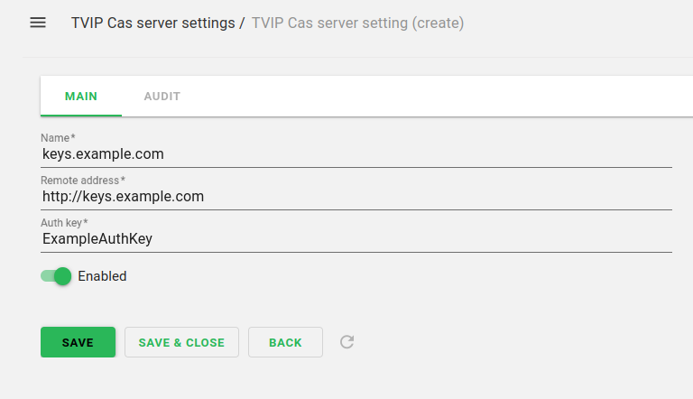 В разделе TVIP Cas server setting добавить новый Cas server.